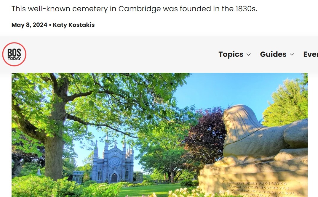 From its creation by members of the Massachusetts Horticultural Society to the notable people buried on its grounds, Cambridge, Massachusetts’ Mount Auburn Cemetery is quite a space. I delved into its history for BOStoday in May 2024.