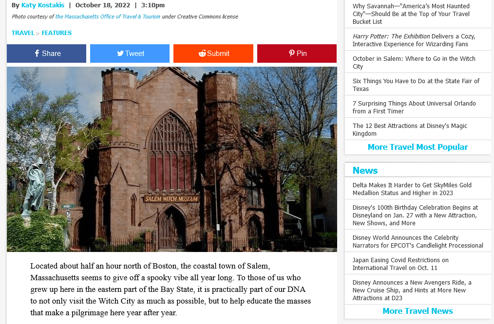 Published in October 2022, for Paste Magazine, I share my picks for must-see sights in Salem, Massachusetts. Included in the copy are tips for those planning to visit during the city’s extremely busy tourist season in October.