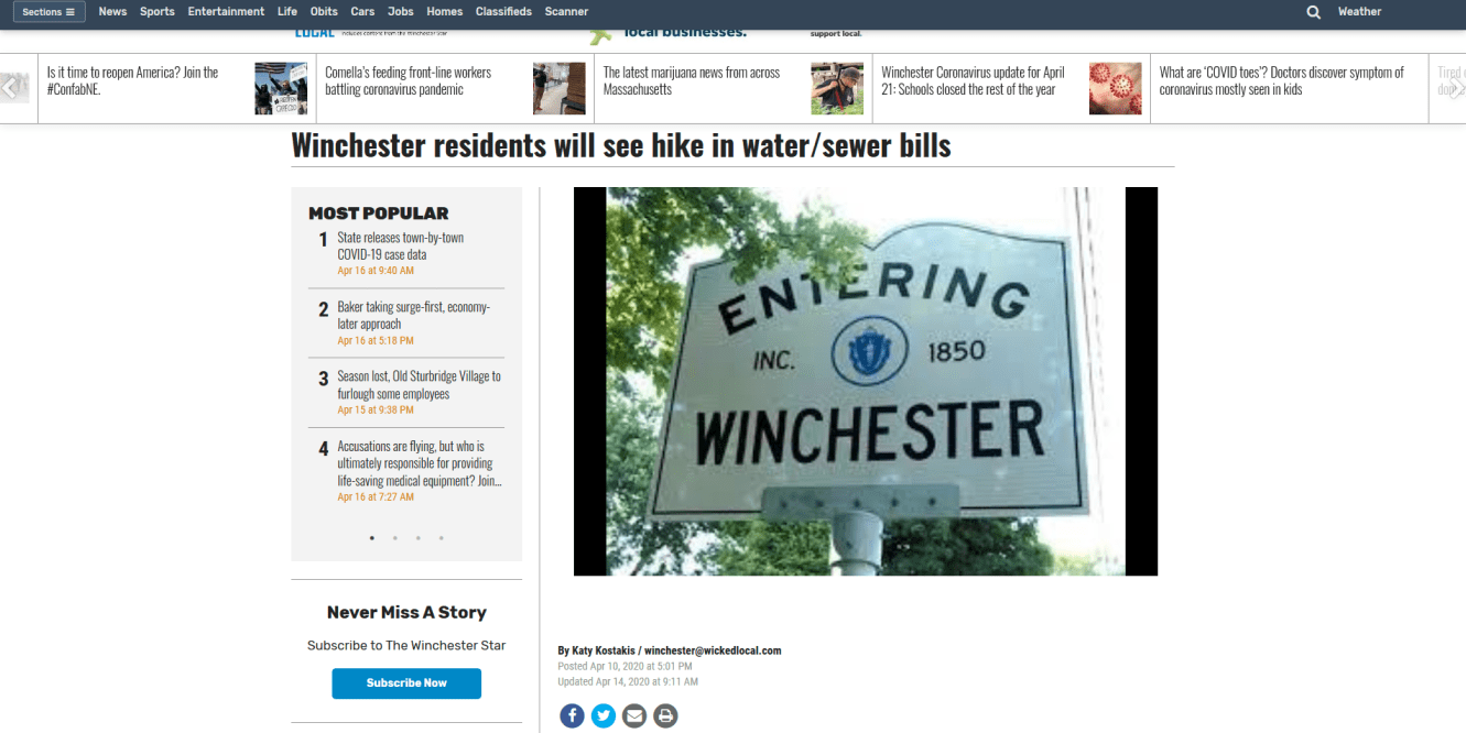An article for the Winchester Star (Winchester, MA) published in April 2020, and run on the Wicked Local digital and print platforms.