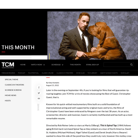 For TCM‘s September programming schedule, I wrote about how improvisation served as the foundation for three films involving actor, director, and screenwriter Christopher Guest. https://www.tcm.com/this-month/article/021655/