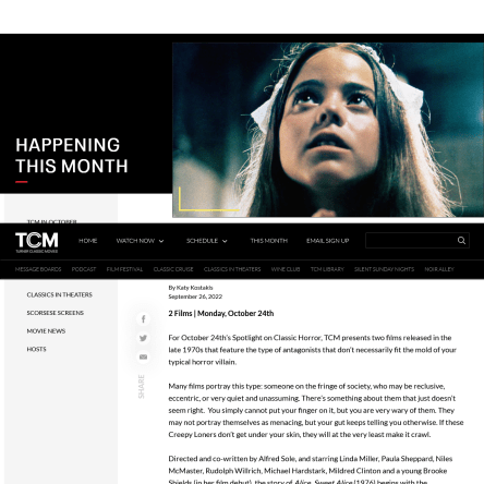 For Turner Classic Movies‘ Spotlight on Classic Horror in its October 2022 programming, I focused on two films that present atypical villains in horror and how certain characters create a … Continue reading Creepy Loners