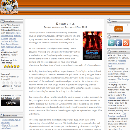 My review of the film adaptation of the acclaimed Broadway musical based on the story of The Supremes for Moviesnobs.net.